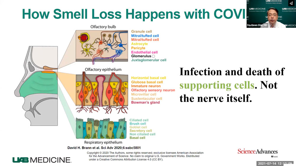 Cho discussed treatment options after losing smell with COVID in this UAB Medicine video.