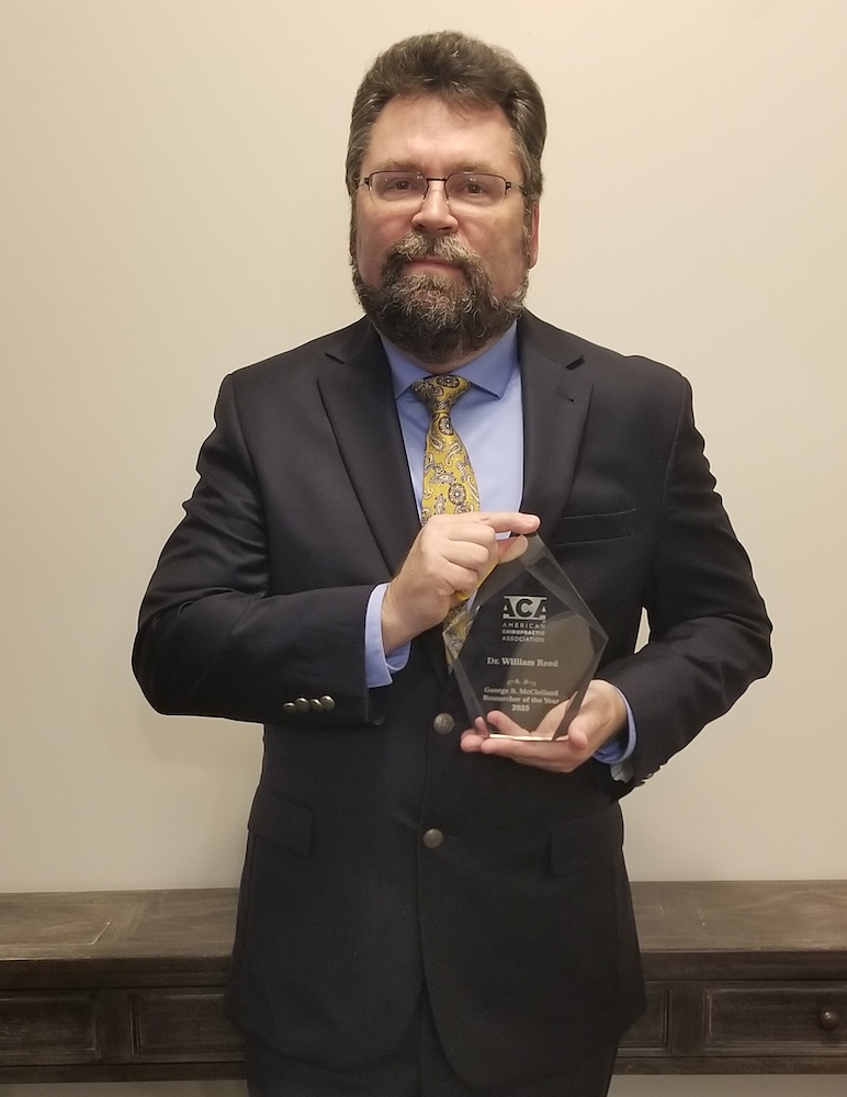 “This award is both an honor and a privilege as it brings recognition to my research efforts over the last 20 years to advance our knowledge and mechanistic understanding of chiropractic and manual therapy approaches to healthcare,” said Reed. “Reviewing the list of past awardees of the ACA Researcher of the Year award places me in the company of distinguished friends and colleagues, many of whom I have had the distinct pleasure of working with and being co-authors on many peer-reviewed research articles.”