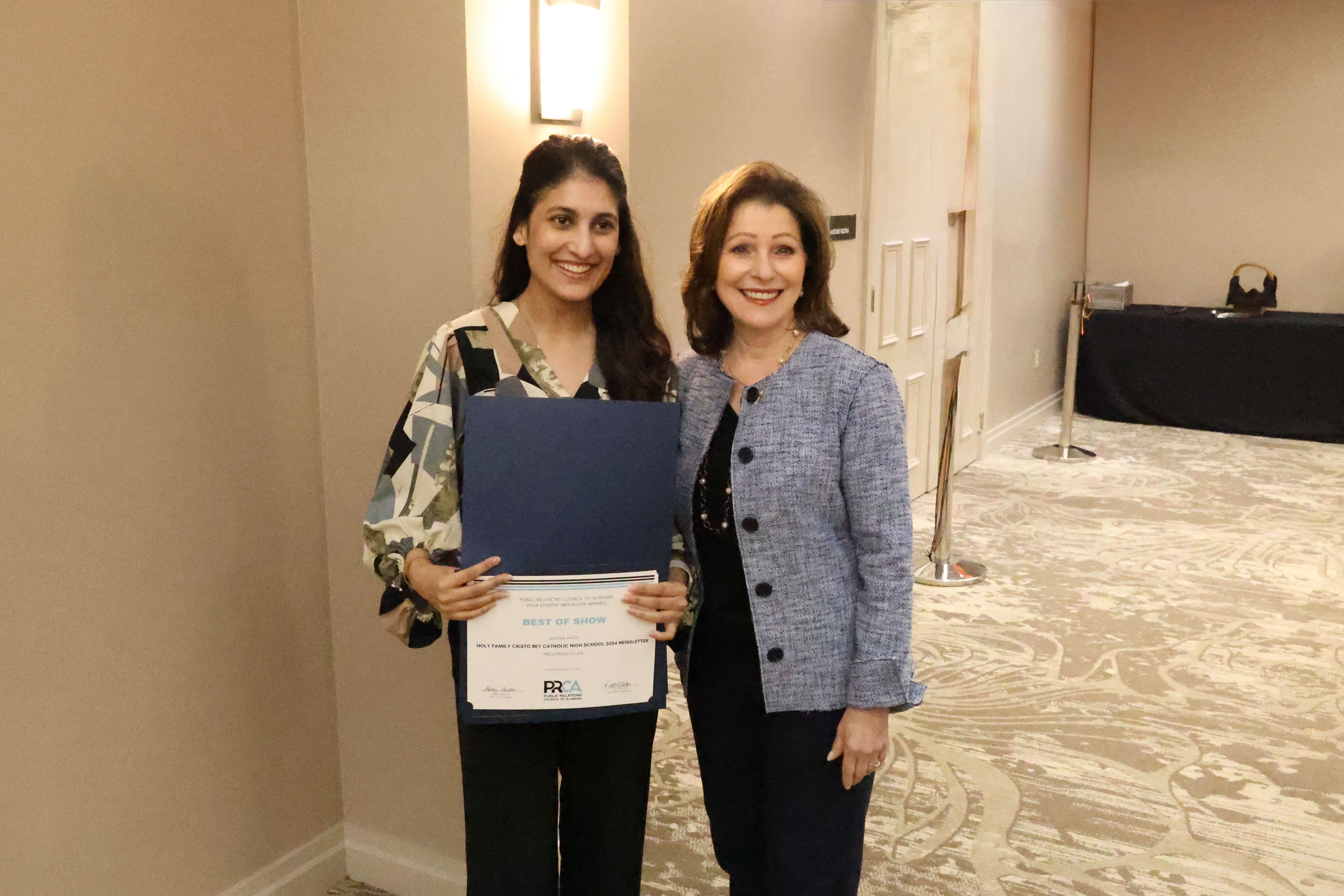Javed received seven individual awards for her senior public relations campaign for Holy Family Cristo Rey Catholic High School and social media work with the PRCA/PRSSA at UAB, including: