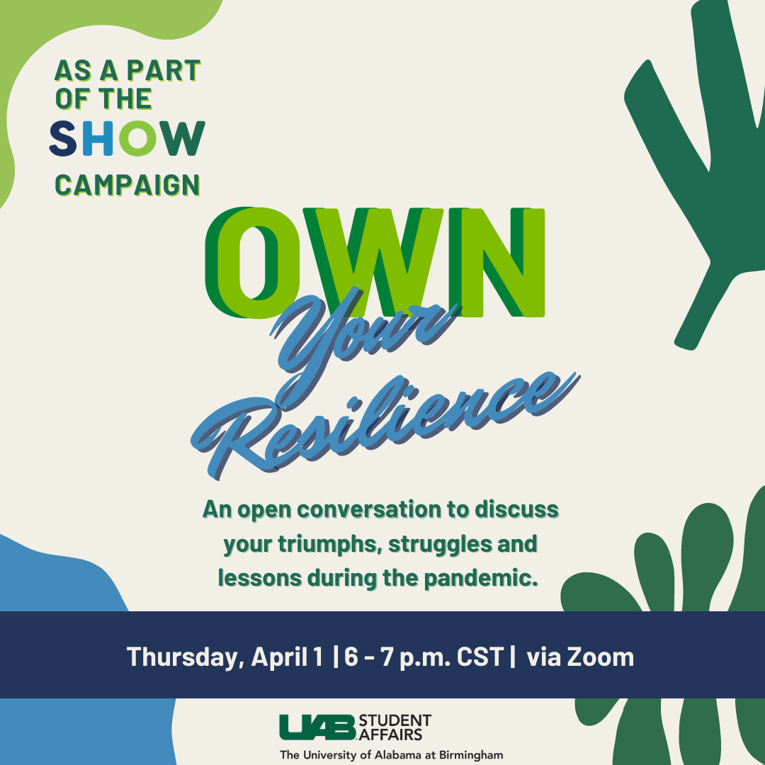 OWN Your Resilience will be a virtual conversation and safe space for students to share their mental health struggles and experiences during the COVID-19 pandemic.
