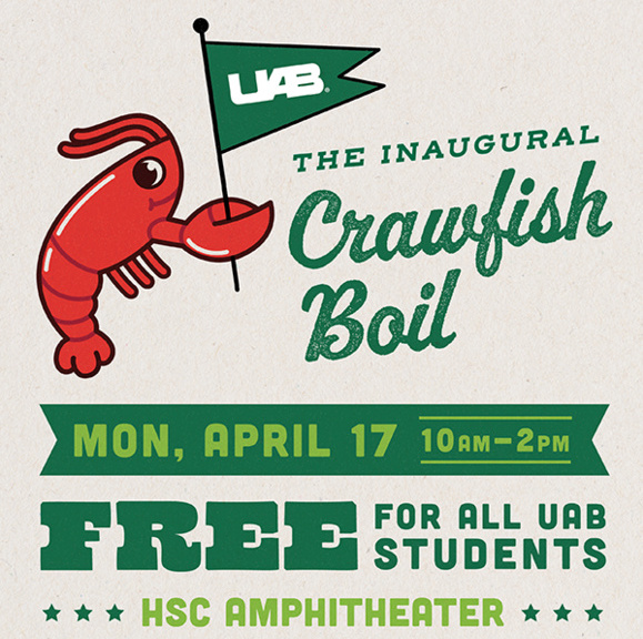 Kick off "Stress Less Week" with the inaugural Crawfish Boil! The event will take place on Monday, April 17 from 10 a.m. to 2 p.m. at the Hill Student Center Amphitheater.