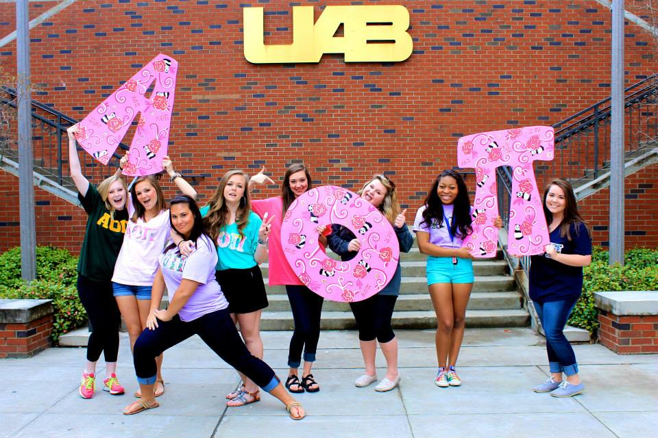 Maya Bailey with her Alpha Omicron Pi sisters at UAB