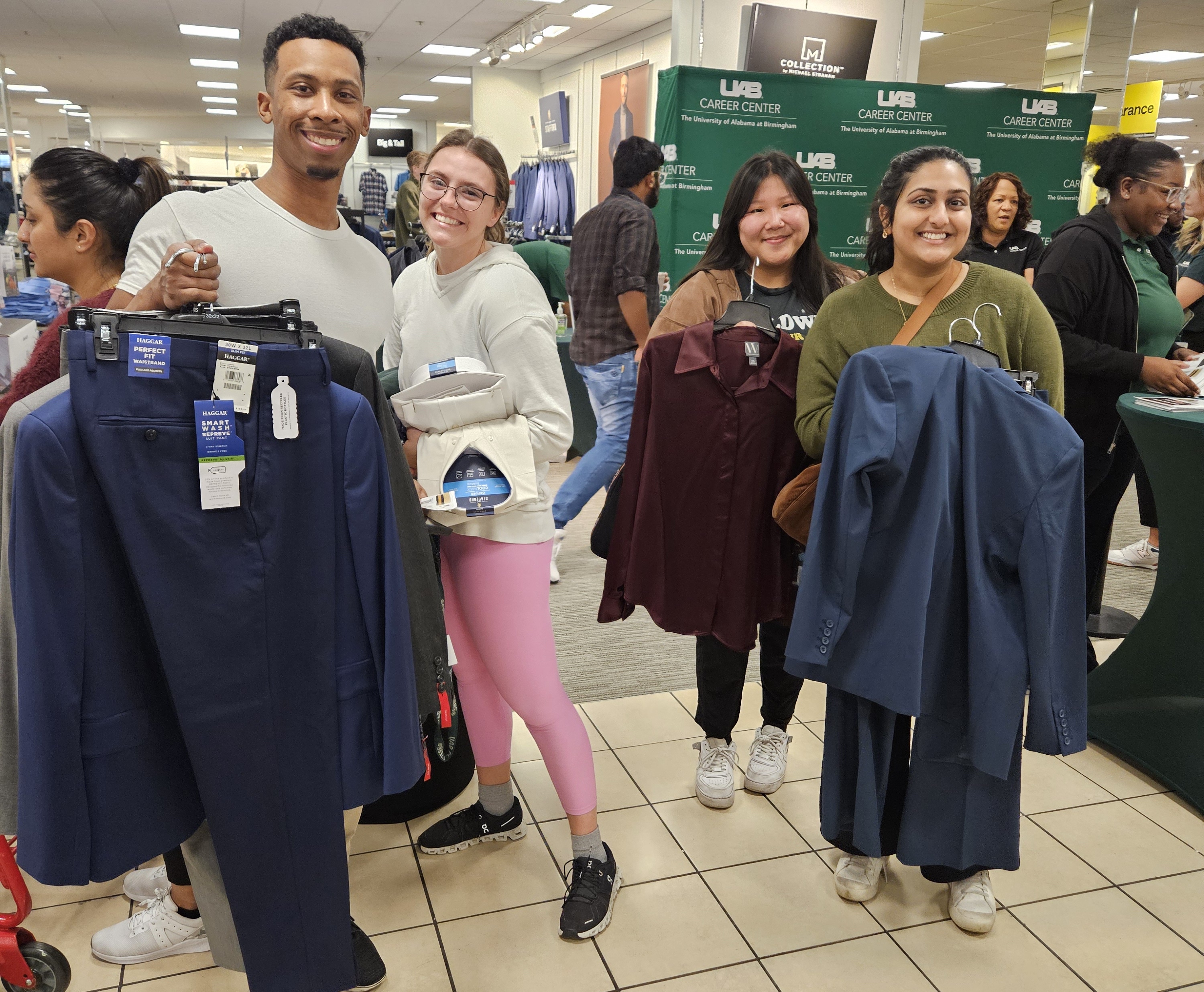 Over 90 Blazers from the University of Alabama at Birmingham (UAB) seized the opportunity to elevate their professional attire at the Career Center's Suit Up event, held in partnership with JCPenney on Sunday, January 28. The event, aimed at assisting UAB students (both undergraduate and graduate) as well as alumni, provided substantial discounts on a wide range of professional attire including dress suits, ties, and shoes.