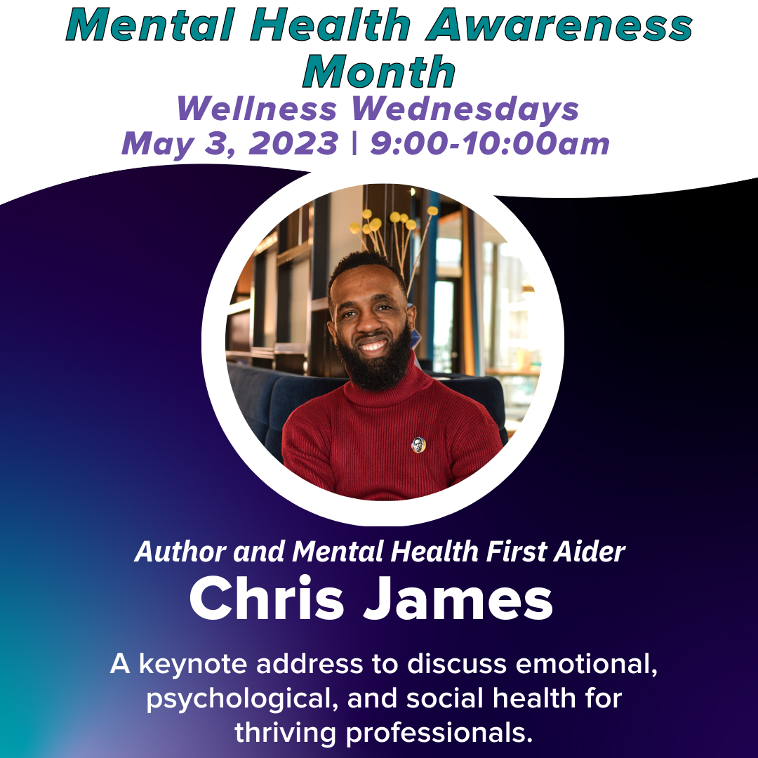 Chris James passionately reminds those who provide wellness services for others to never forget to do the work to maintain wellness for self. Don’t forget the ME in MEntal health. Let’s talk emotional, psychological and social health for thriving professionals.Join Zoom MeetingOpens an external link.