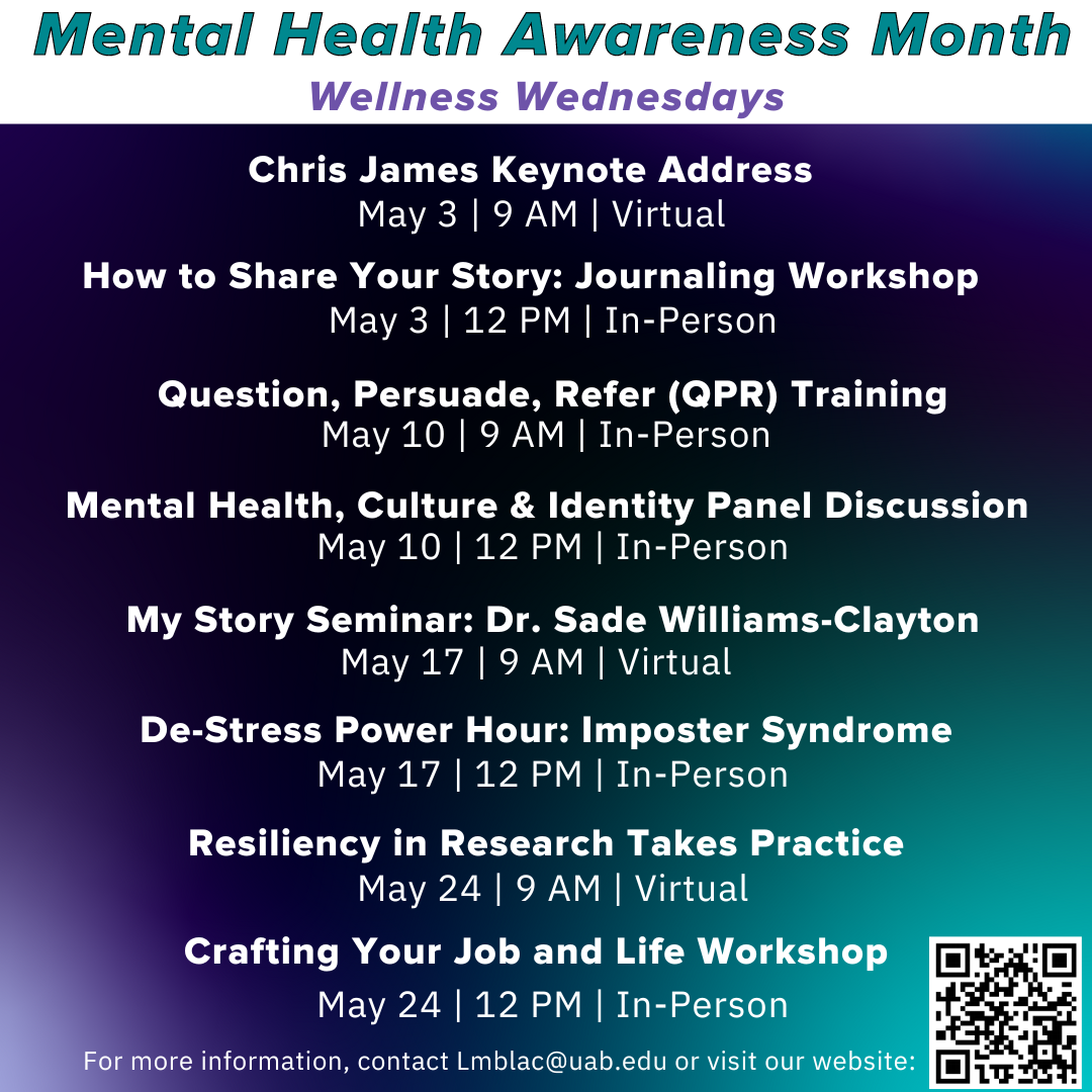 Graduate Resilience Outreach and Wellness (GROW) invites you to the Mental Health Awareness Month Wellness Wednesdays.