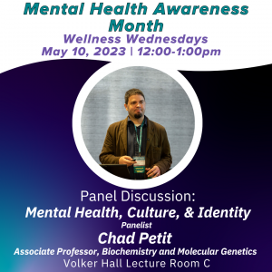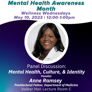 Panelists include Joshua Lewis (Doctoral Student, Department of Sociology), Jazmine Benjamin (Doctoral Student, Department of Medicine), Dr. Anne Ramsey (Postdoctoral Fellow, Department of Medicine), Aye Myat Thiri (Master’s Student, MPH-MBA Program), and Dr. Chad Petit (Associate Professor, Department of Biochemistry and Molecular Genetics). -