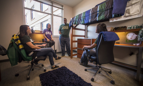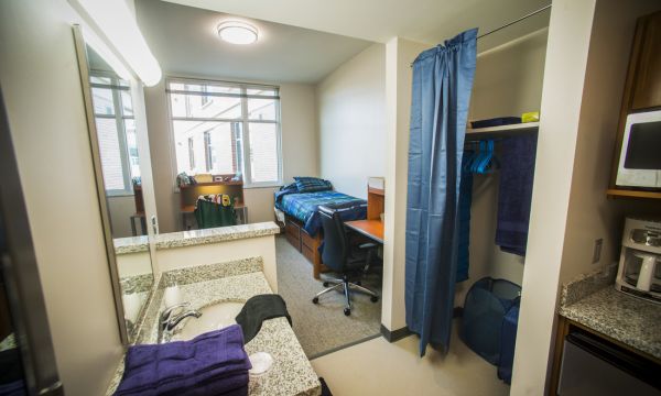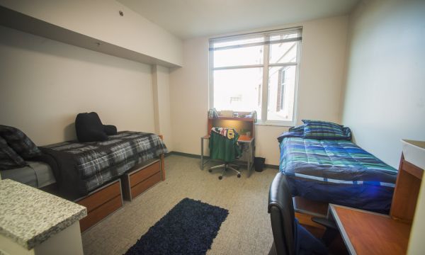 The 217,000 square foot building located on the north half of the block bordered by 9th and 10th Avenues South and 16th and 17th Streets. It consists of an eight-story tower and a four-story wing that contains common space and multi-use office space in addition to housing. Gold Hall is open to first-time freshmen.