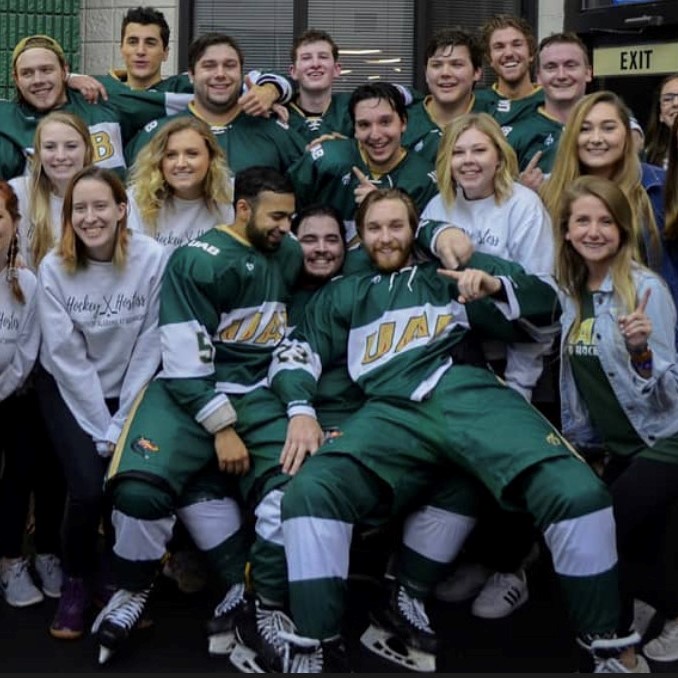 Welcome to the UAB Club Ice Hockey team! We are not a community, but a family! Our club has a variety of students who played hockey since they were three years old to students who have never touched a hockey stick. Our goal is to introduce you to hockey and help grow interest in the South. Our team consists of two groups, our E-line and D-line. The E-line consists of players who practice weekly and travel to play against other schools across the South. The D-Line consists of players who want to learn the sport, practice weekly, and still travel with the team so they can experience the fun of being part of UAB Ice Hockey. Alongside our players, we also have our Bender Club which travels with the team and assists with social media, game-day operations, and more! Follow us on Instagram and contact us via email or Instagram to become part of the family!
